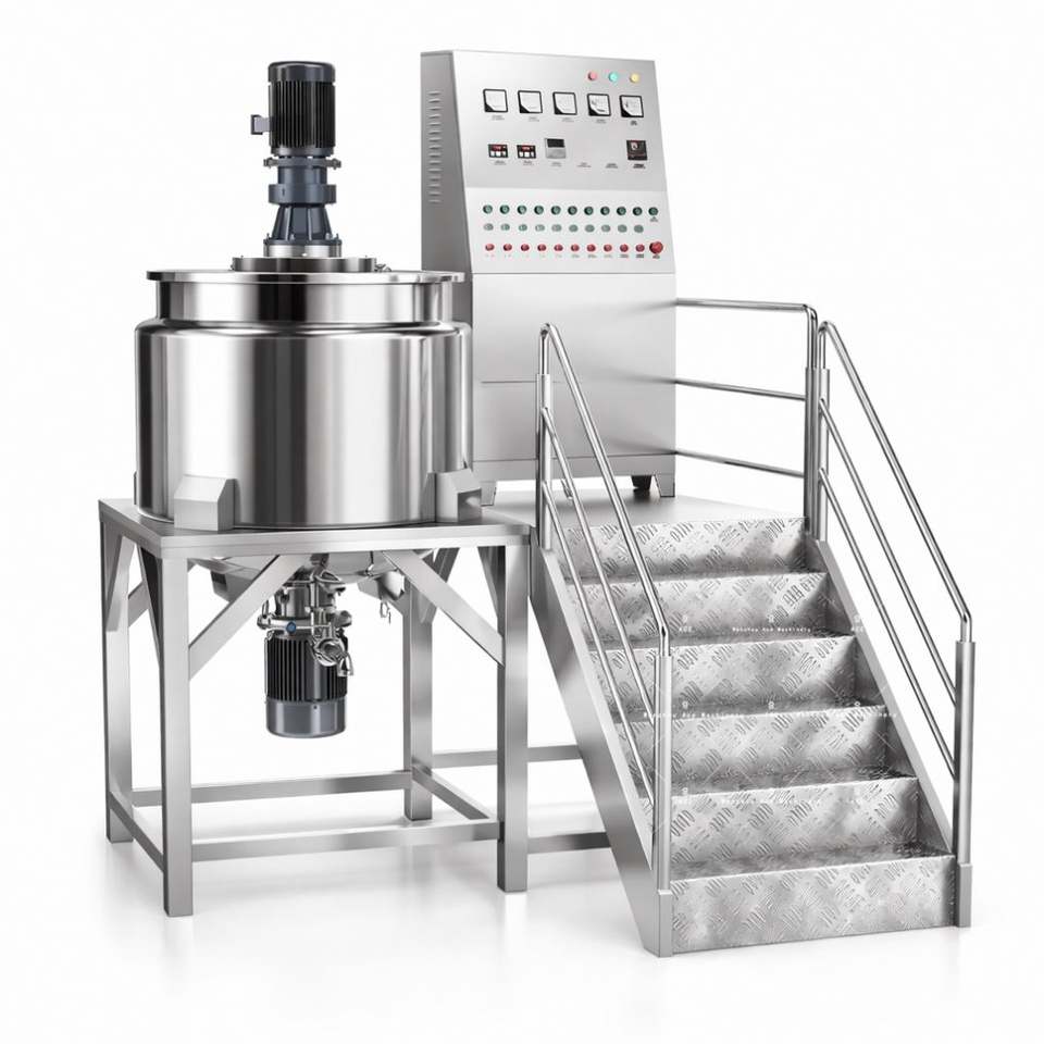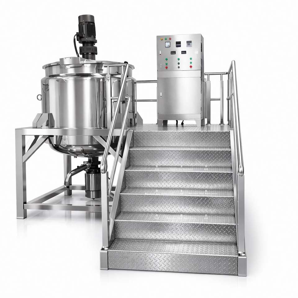 Cuve de mélange à double enveloppe en acier inoxydable pour la fabrication de savon liquide avec agitateur et homogénéisateur, chauffage électrique/à la vapeur