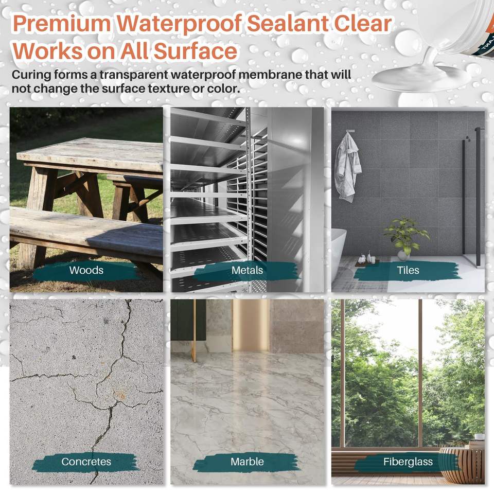 Scellant liquide imperméable transparent, revêtement imperméable invisible, agent de réparation des fuites, toits, salle de bain, cuisine, intérieur et extérieur