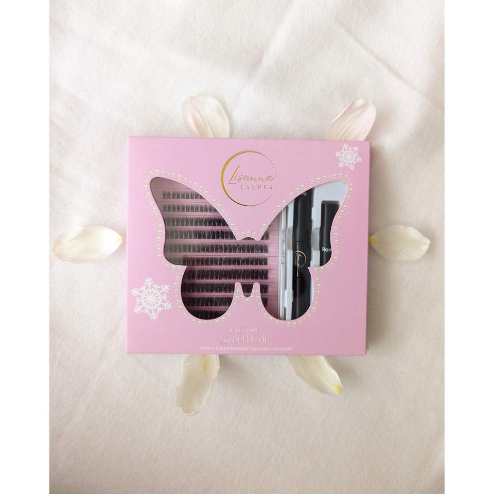 Kit d'extension de cils Lisanna Lashes Sweet Devil DIY, qualité supérieure, coréen, PET/PBT, design classique, 8-14 mm, emballé Fnnikomplekt