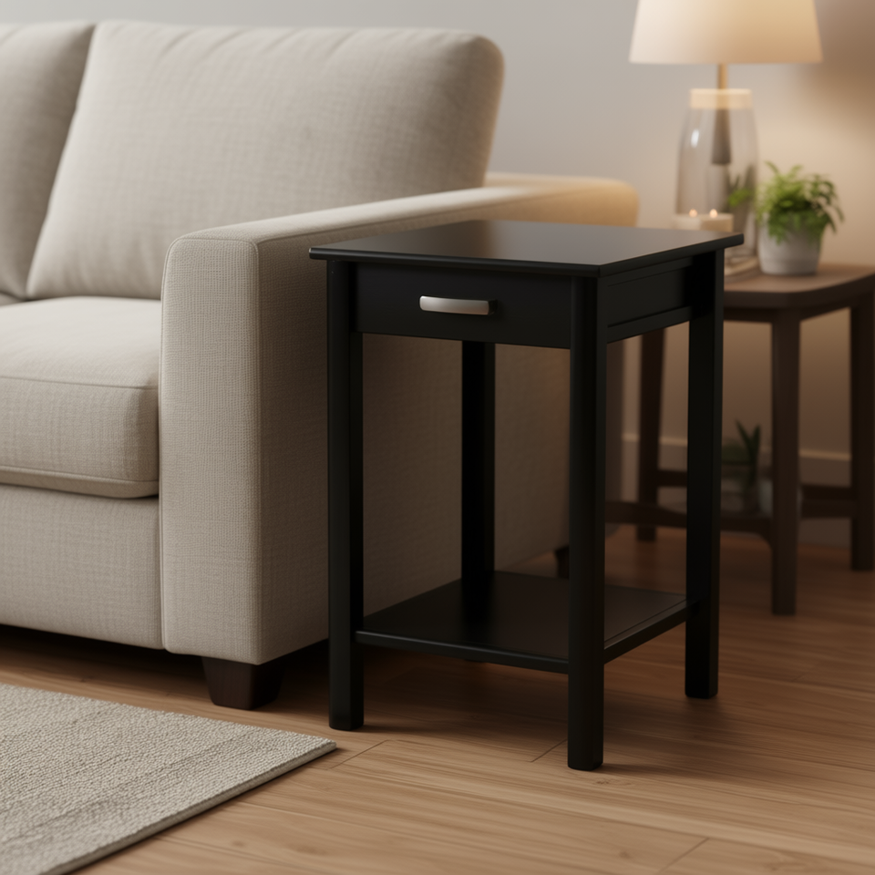 Table d'appoint Liso pour salon avec tiroir et étagère, meuble en bois moderne pour usage domestique