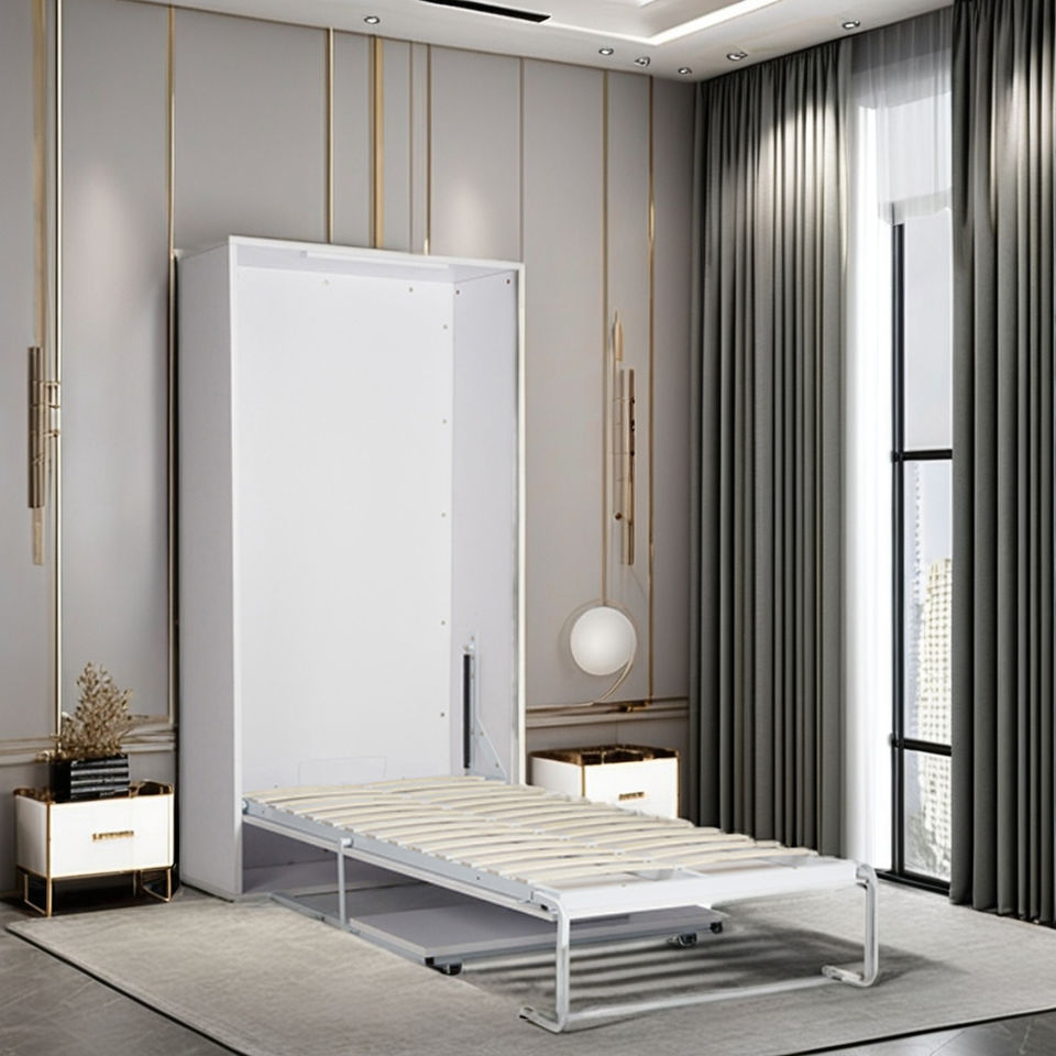 Lit escamotable vertical intelligent pour gagner de l'espace avec armoire, bibliothèque et bureau de mode