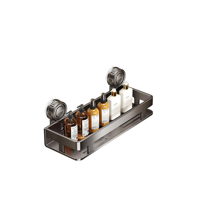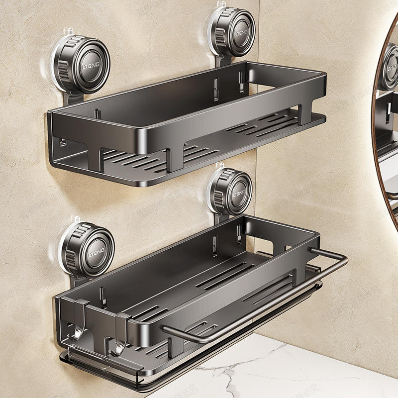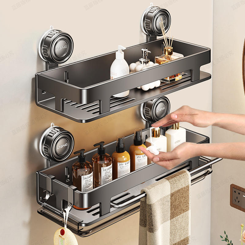 Étagère de salle de bain rectangulaire à fixation par ventouse Litens, double couche, rangement durable pour toilettes et lavabo, fixation murale