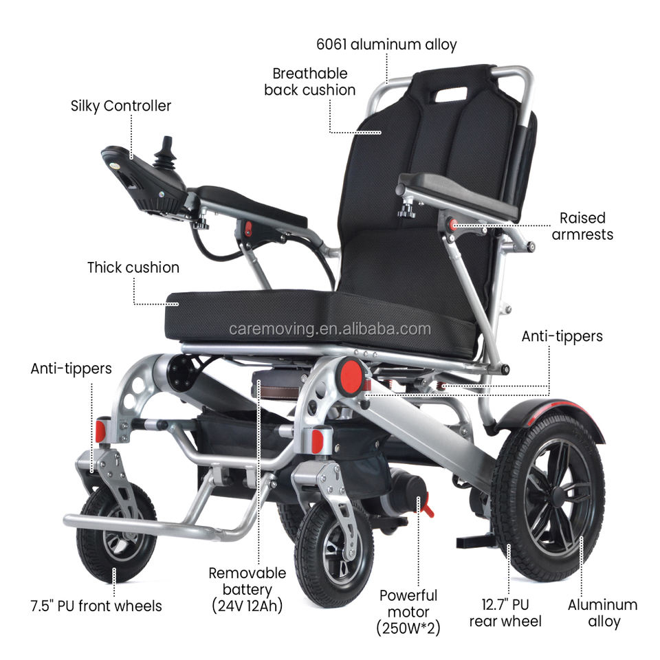 Batterie au Lithium 12AH 24V pliable en alliage d'aluminium 4x4 tout terrain fauteuil roulant électrique pour fauteuil roulant obèse électrique et pliable