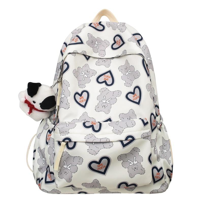 Little Bear Pattern Backpack 15 Inches With Keychain For Girls School Education
