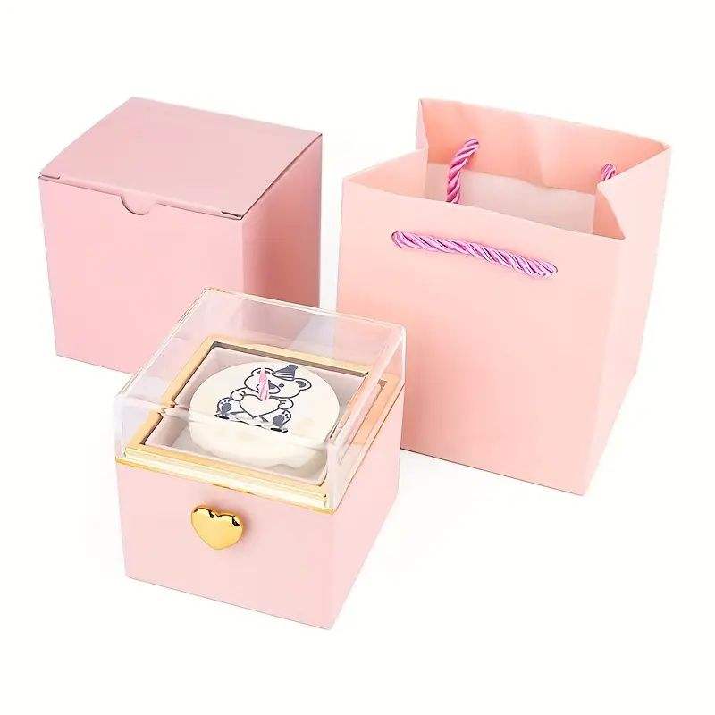 Boîte à bijoux rotative en forme d'ours avec bougie surprise (collier et bague non inclus)