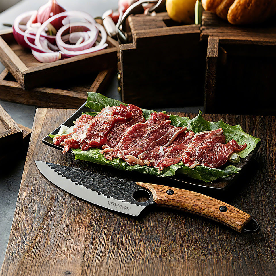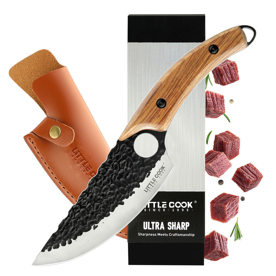 Little Cook Couteau serbe à désosser 5,5 pouces, forgé à la main en acier au carbone pour boucherie, cuisine et camping