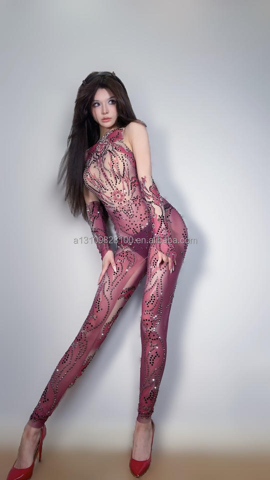 Petit diable discothèque Bar anneaux acrobatiques Performance Sexy diamant incrusté de luxe une pièce pantalon Costume de fête