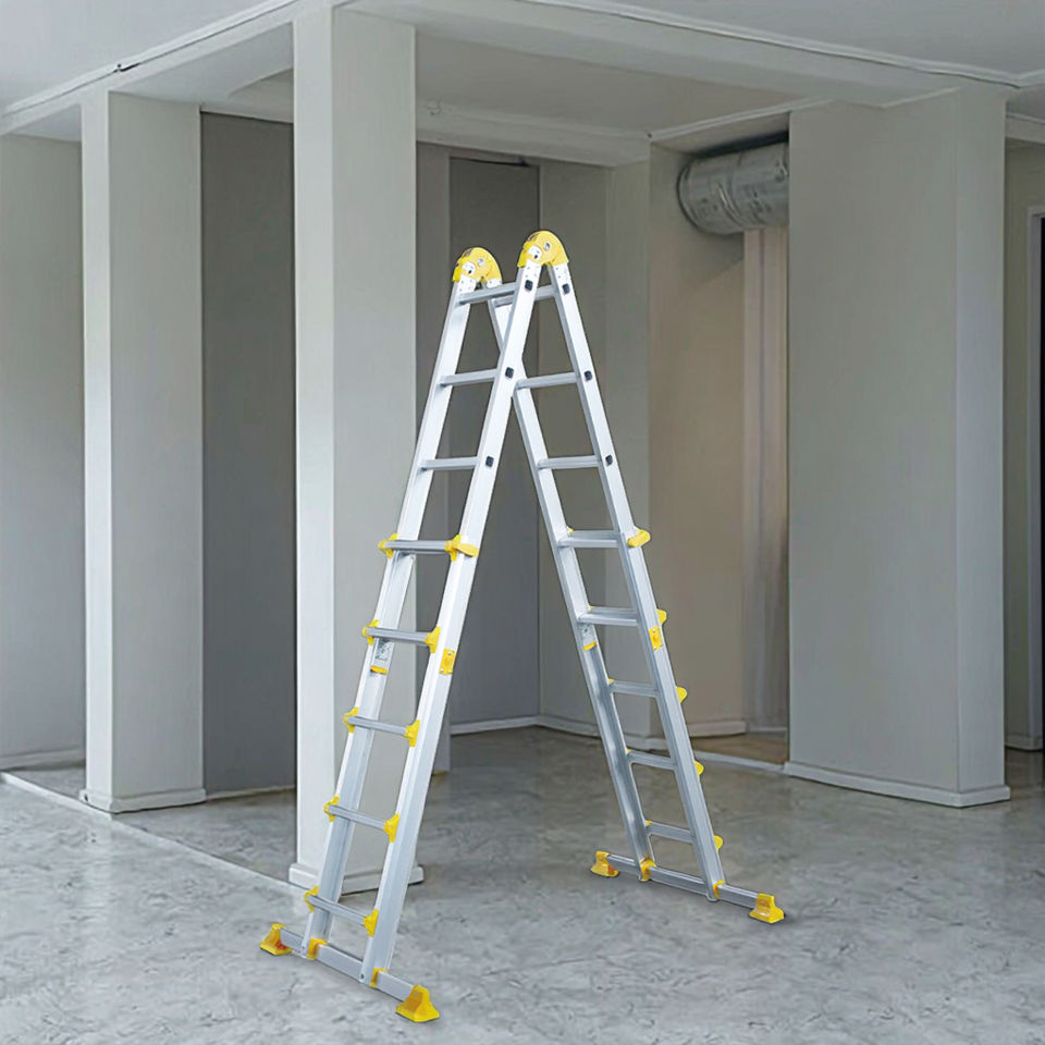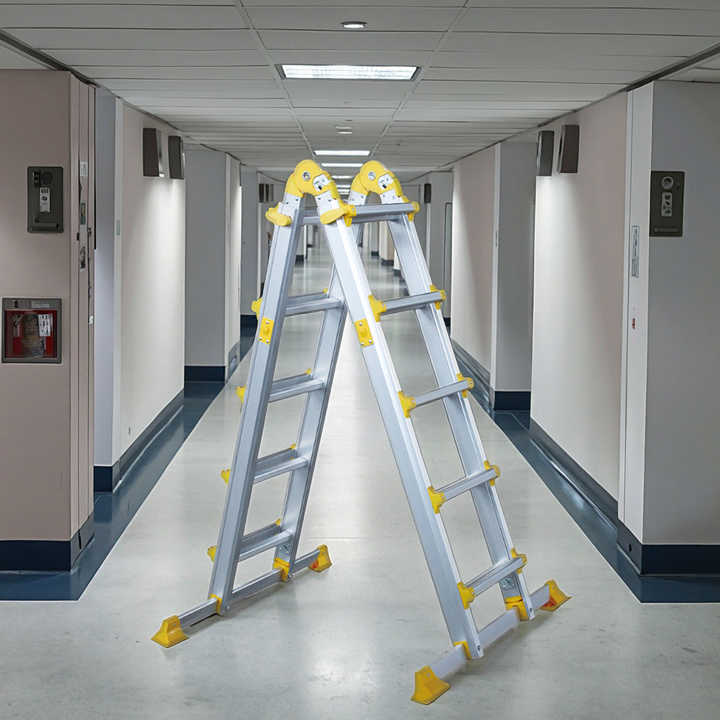 Échelle combinée 4 en 1 en aluminium de style Little Giant, échelle télescopique robuste certifiée EN 131 avec barre stabilisatrice