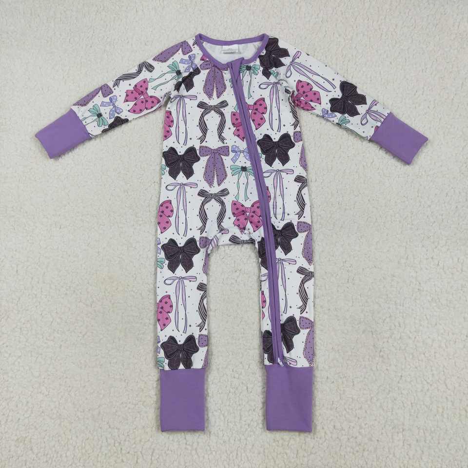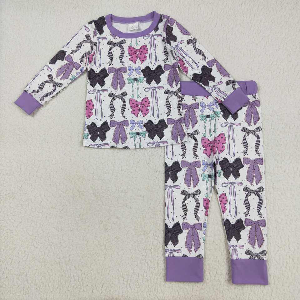 Little Girl Boutique Casual Clothing Set purple black bows Print fall Outfits for Kids Toddlers Wholesale Child Sister set