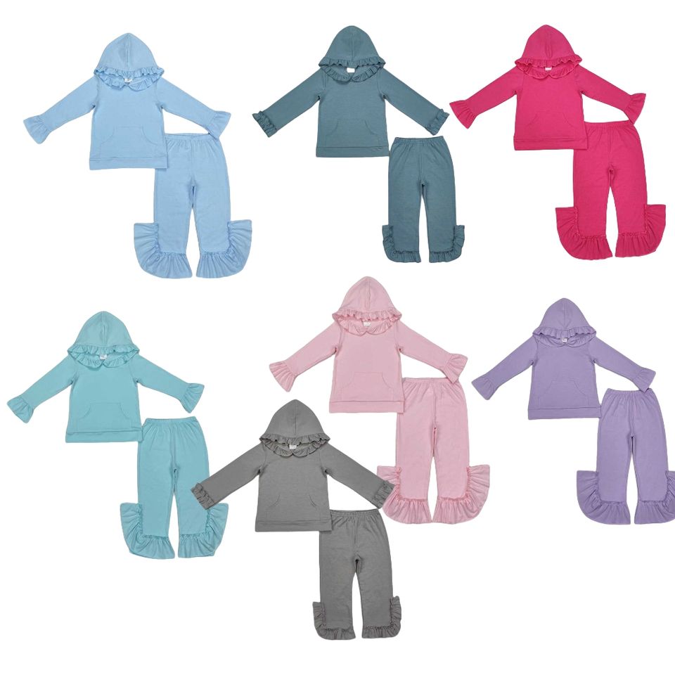 Little Girl Casual Boutique Solid Floral Print Fall Long Sleeve Hoodies Baby Girl Pajamas Wholesale Children's Clothing 95%