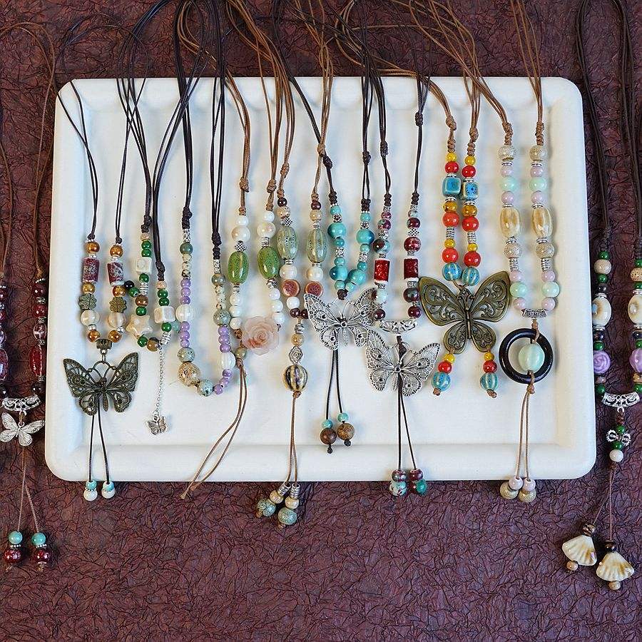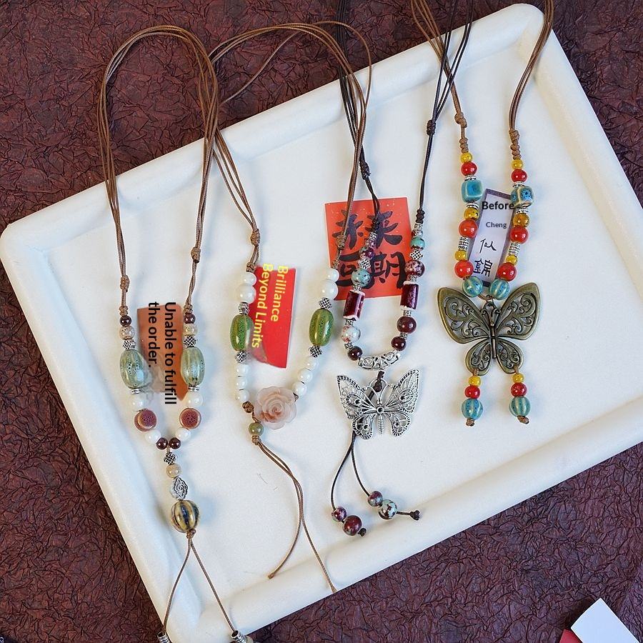 Chaîne longue en laine tissée à la main, style ethnique chinois, collection féminine, best-seller du Little Red Book, céramique de Jingdezhen