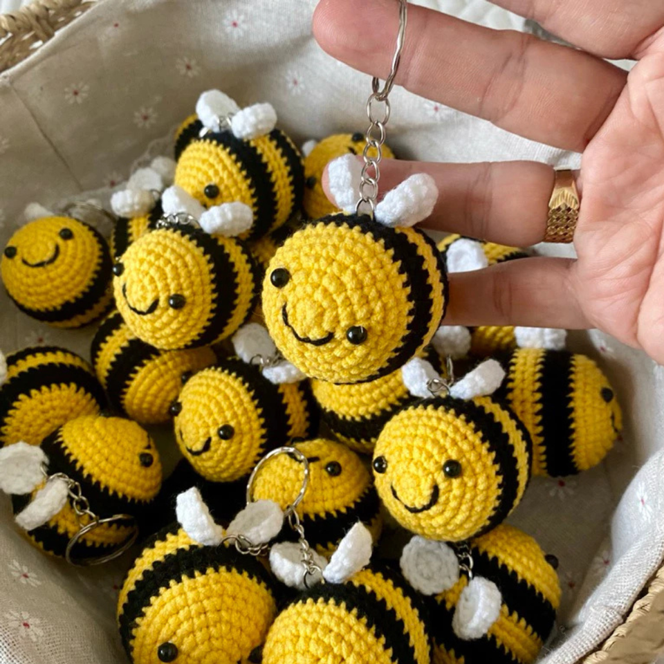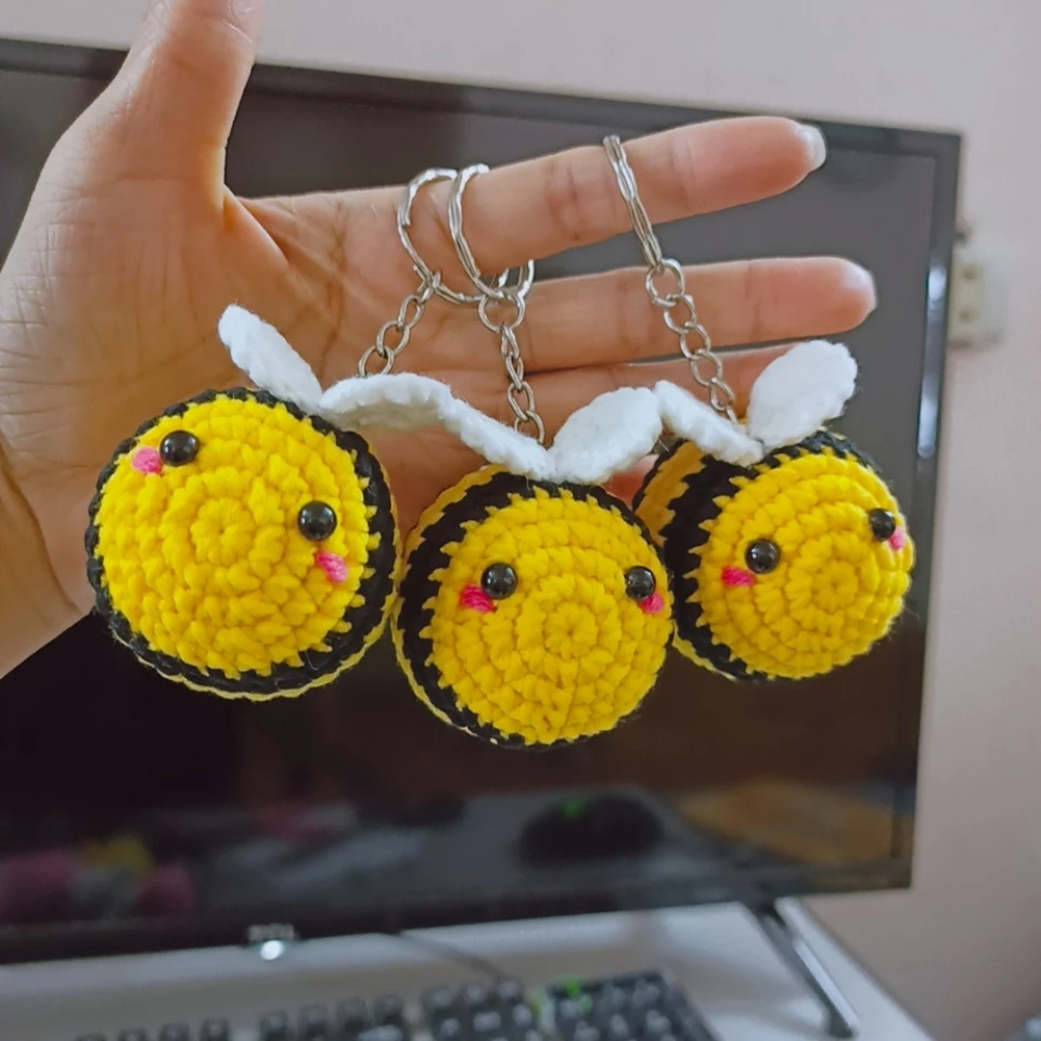 Petit pour abeille Crochet porte-clés fait à la main jaune Crochet jouets sac à tricoter suspendus pendentif accessoires fabriqués au Viet Nam