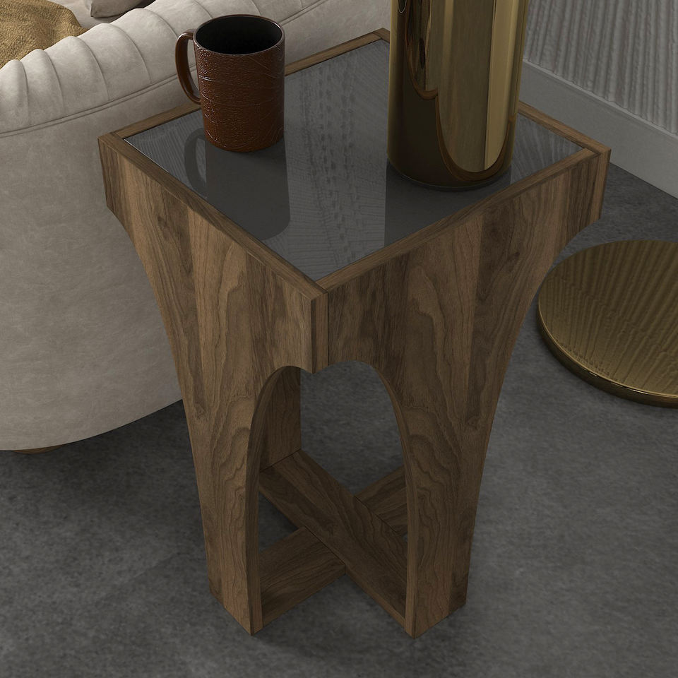 Table d'appoint exclusive de luxe en aggloméré Litus avec miroir noyer-anthracite de Turkiye Best Seller