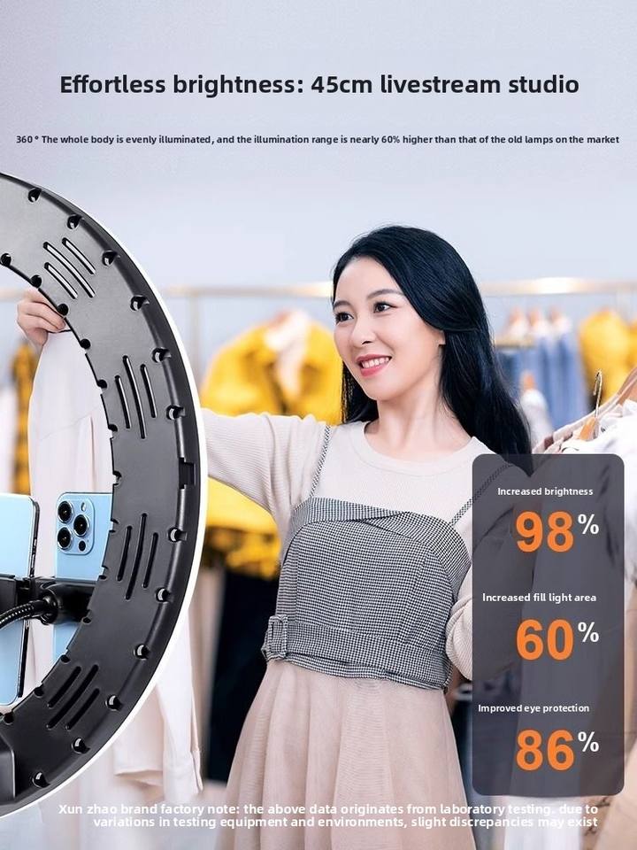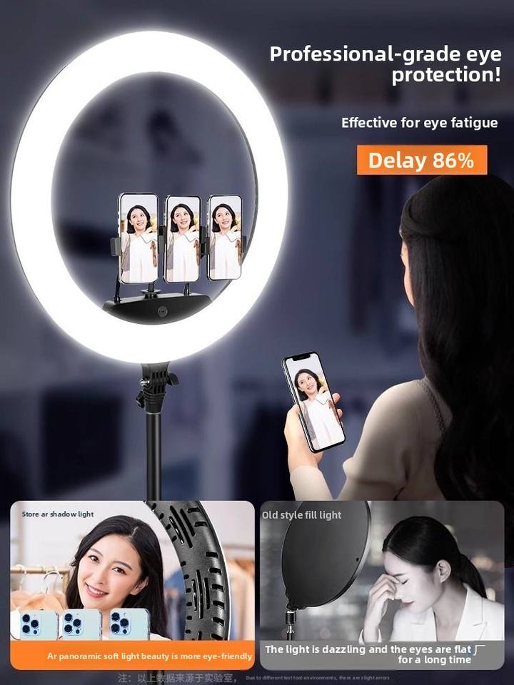 Support de téléphone avec anneau lumineux pour diffusion en direct, éclairage beauté, trois températures de couleur, 50W, pour influenceurs