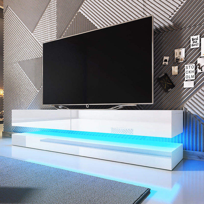 Meuble TV flottant avec 2 tiroirs, 140 cm, LED, pour salon.