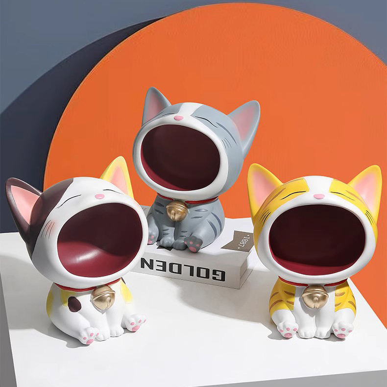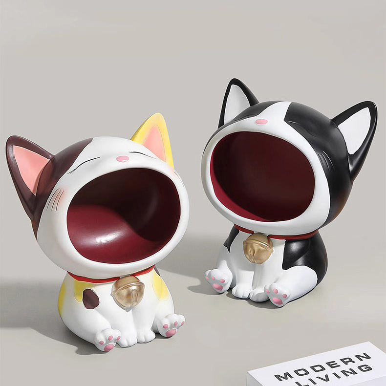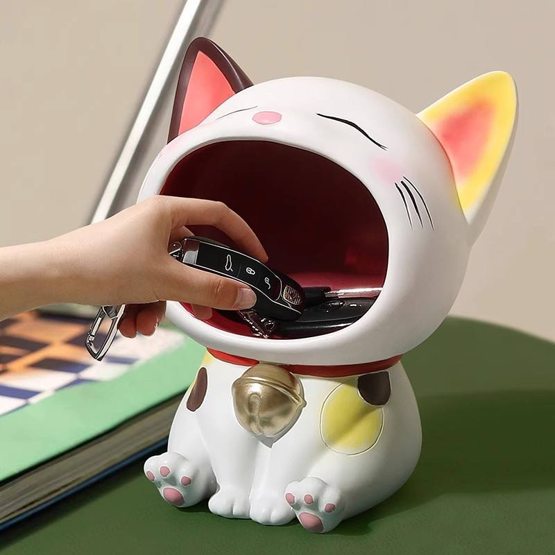 Salon entrée table décor résine clé bol support de rangement large bouche chat chanceux bonbons bijoux articles divers organisateur conteneur