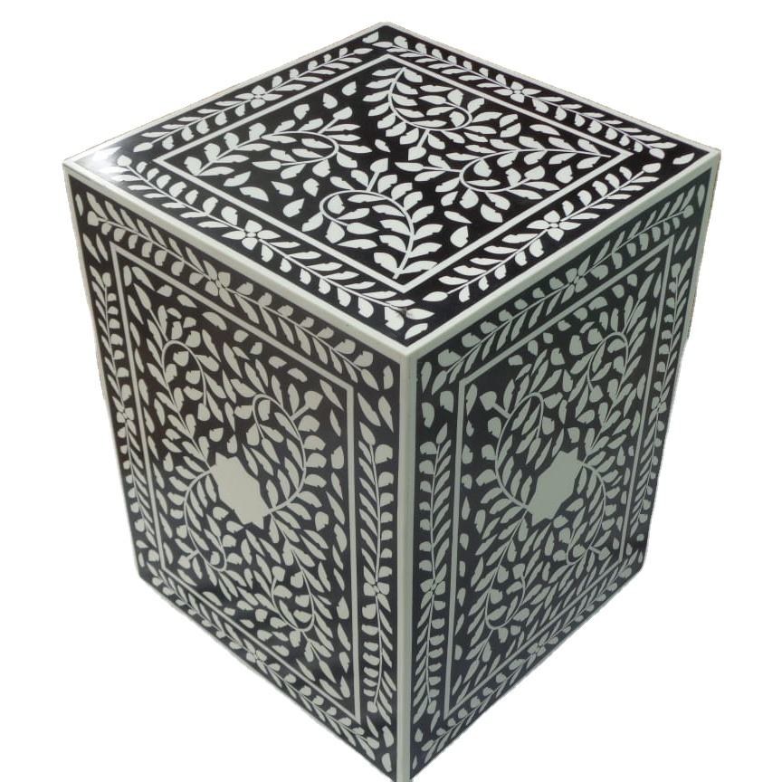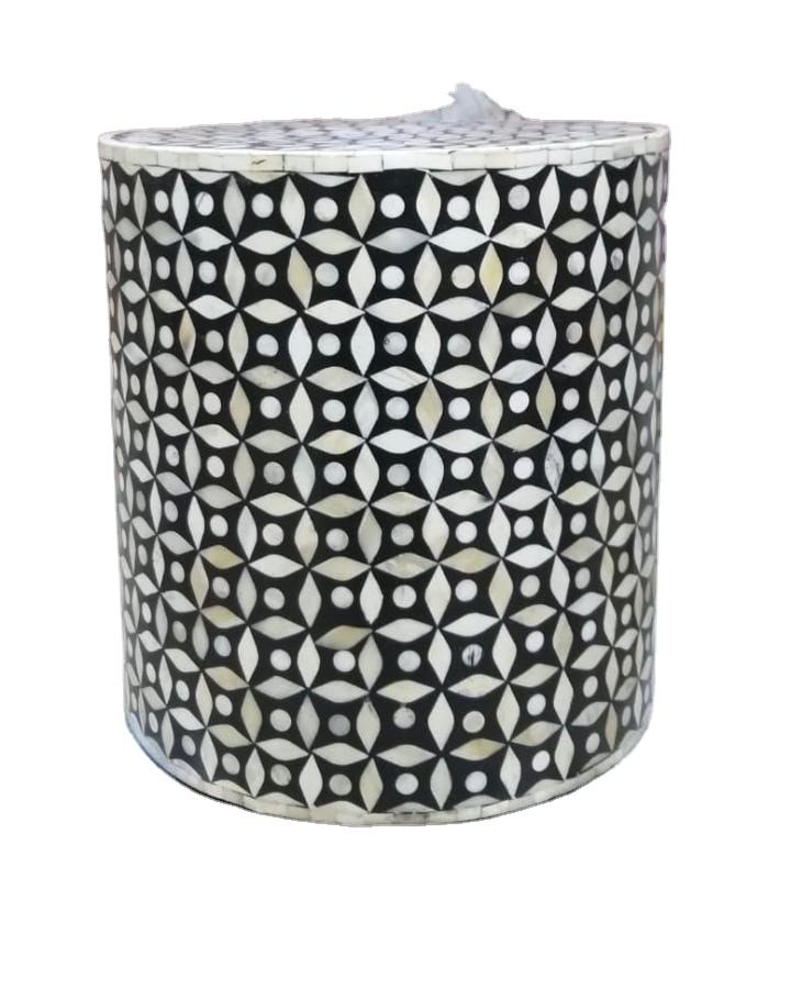 Meubles de salon Tabouret en incrustation d'os en MDF Incrustation d'os en gros Tabouret cylindrique de salon moderne de bonne qualité pour chambre à coucher