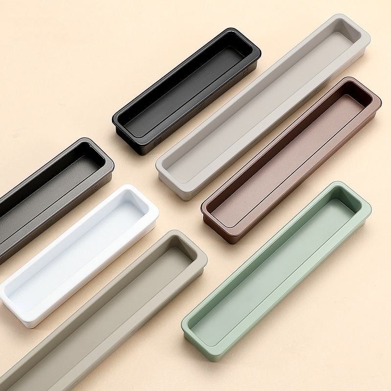 Poignée de porte de placard encastrée à fente, couleur Morandi, effet peau, pour salon, cuisine, commode