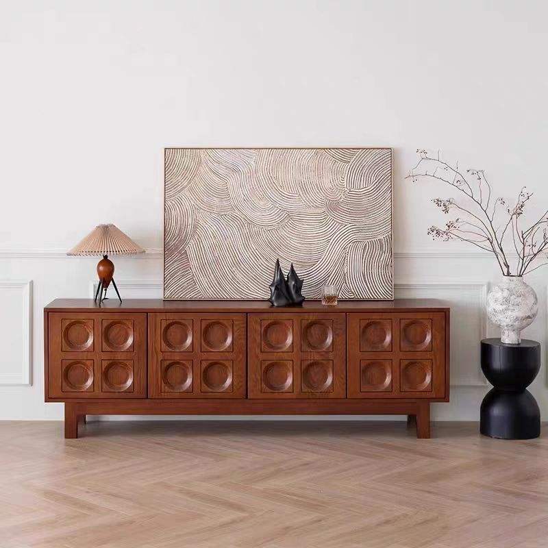 Meuble TV de salon grande capacité en bois massif, style Mid-Century, centre de divertissement, meuble TV combiné
