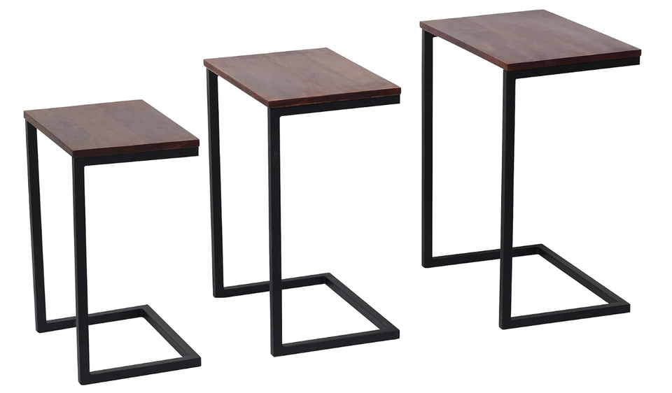 Tables d'appoint rectangulaires en métal pour salon moderne et bureau à domicile, pieds en métal, plateau en MDF, modèle METAL WAVE 10955, durables et empilables