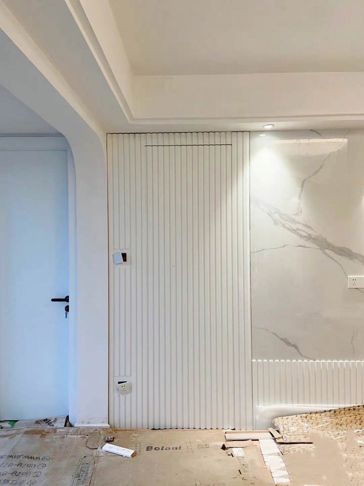 Panneau de protection mural pour téléviseur de salon avec porte dissimulée, fonction canapé, armoire décorative minimaliste en bois pour hôtel et appartement