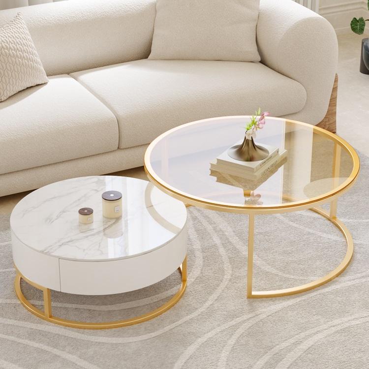 Table lumineuse ronde de salon, de luxe moderne et simple, pour la famille, assiette légère portée à même la peau, combinaison de plateau basse