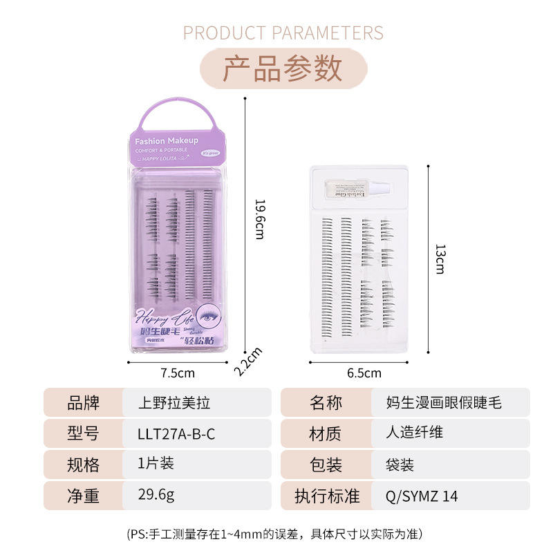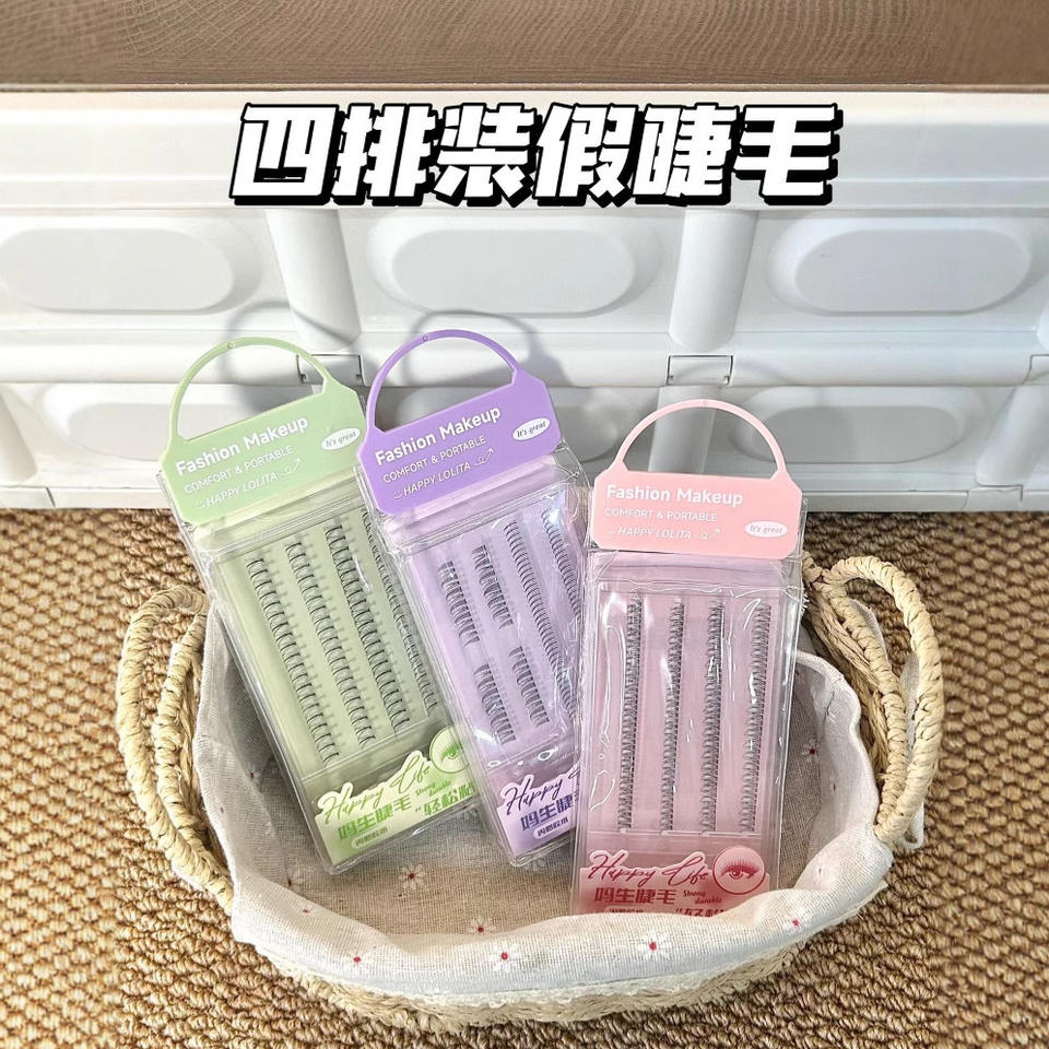 Lmltop Faux cils en grappe à 4 rangées, bande invisible, auto-adhésifs, fibres synthétiques, bande unique Llt27