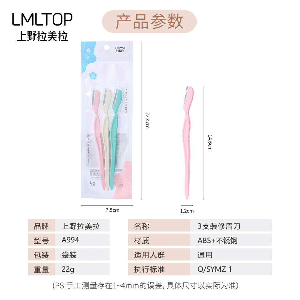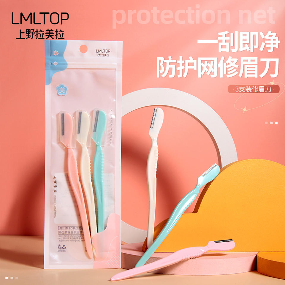 Lmltop Rasoir à sourcils, lot de 3, en acier inoxydable, avec filet de protection, sûr pour les débutants