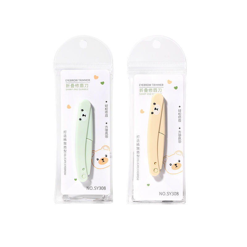 Lmltop Rasoir à sourcils pliable en acier inoxydable compact avec grille de protection jaune-vert pour une coupe sûre des sourcils