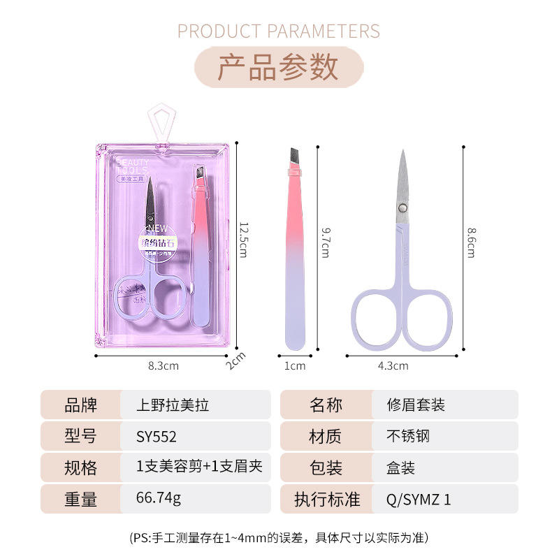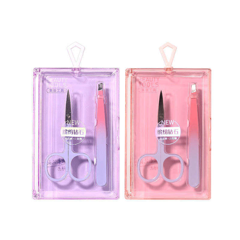 Lmltop – ensemble de 2 pinces à épiler pour sourcils, en acier inoxydable, ciseaux, outils de beauté, rose et violet