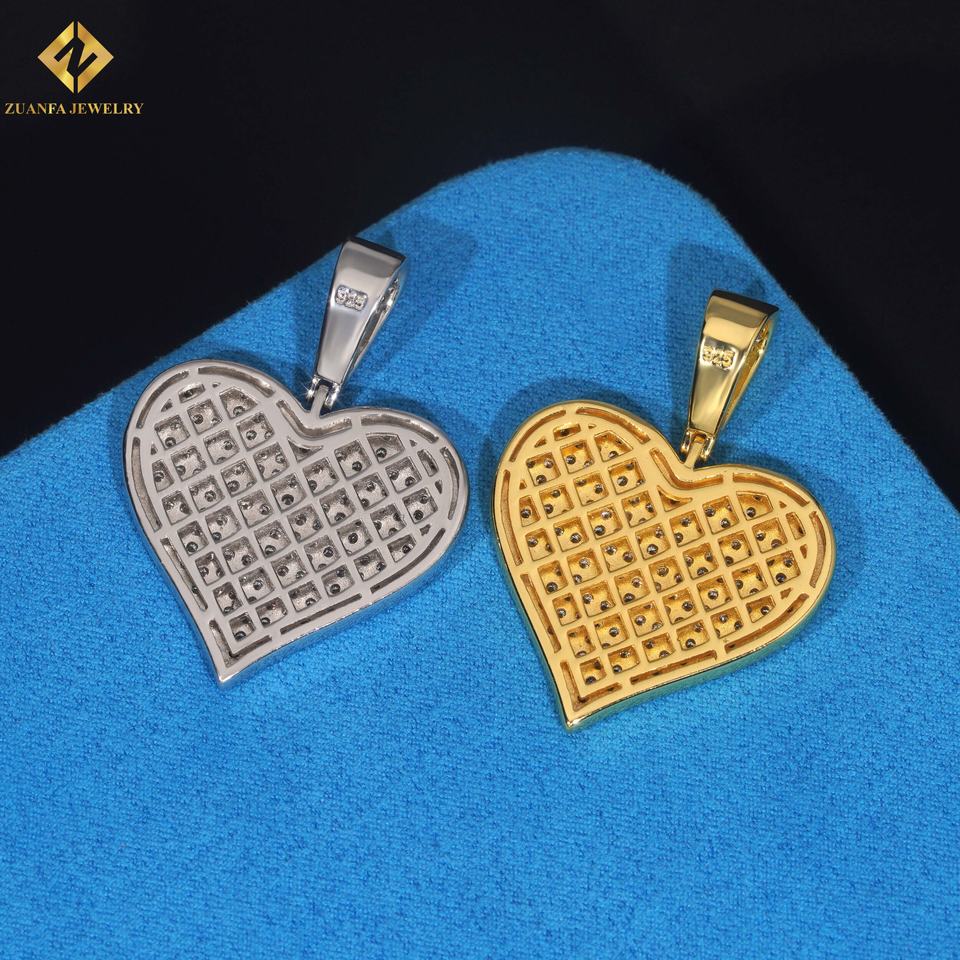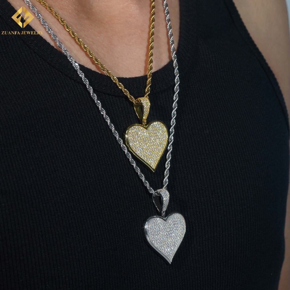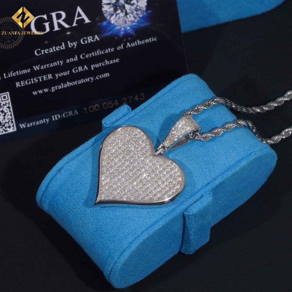 Pendentif Unisexe en Argent 925 Plaqué Or, Certifié GRA, avec Moissanite Cœur Iced Out Style Hip Hop – Expédition Rapide, Stock Local