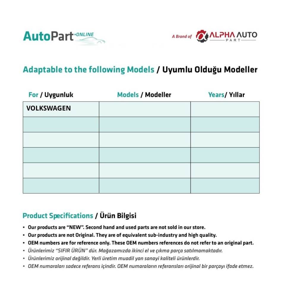 Marque nom:Volkswagen Compatible Spare Parts