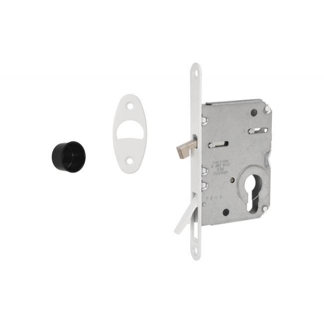 Lock for Sliding Doors AGB Scivola Wave Tre Class + Round Door Flush Pull Handle PZ, White