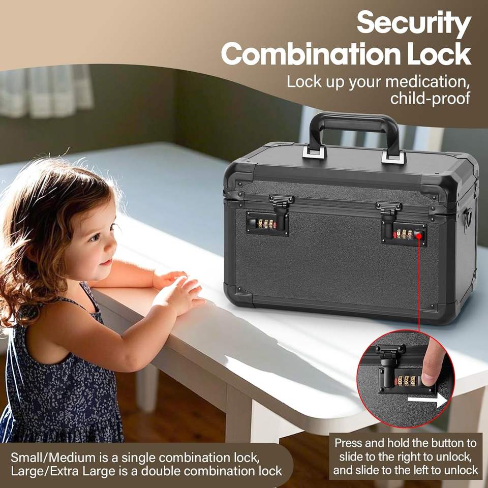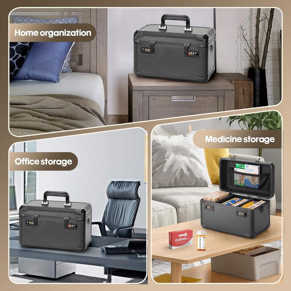 Boîte de rangement verrouillable pour médicaments, argent liquide, téléphone et objets de valeur, à l'épreuve des enfants, portable et durable, 12,2 x 7,8 x 6,8 pouces, noire
