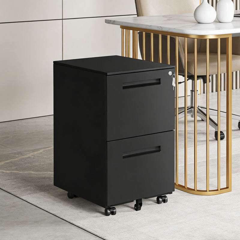 Armoire de classement mobile en acier à 2 tiroirs verrouillables avec roulettes, design peu encombrant pour le rangement à domicile et au bureau