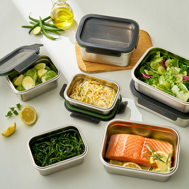 Récipient de nourriture en acier inoxydable avec un couverclePoêle applicable