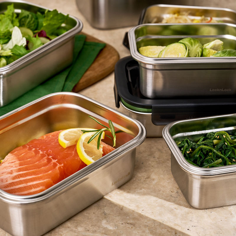 Récipient de nourriture en acier inoxydable avec un couverclePoêle applicable