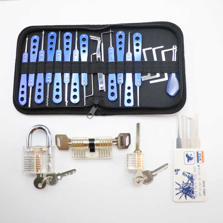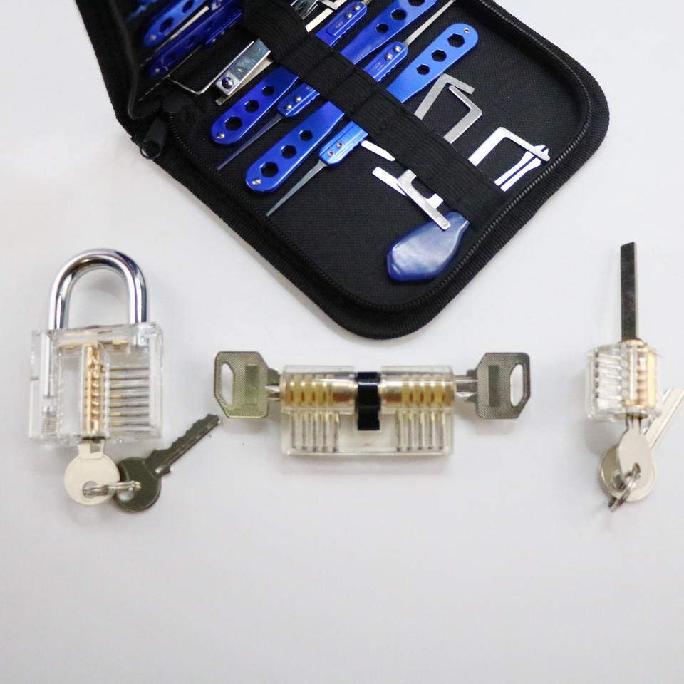 Serruriers débutant trois serrures de pratique transparentes et carte de crédit 19 pièces ensemble d'outils de sélection de verrouillage