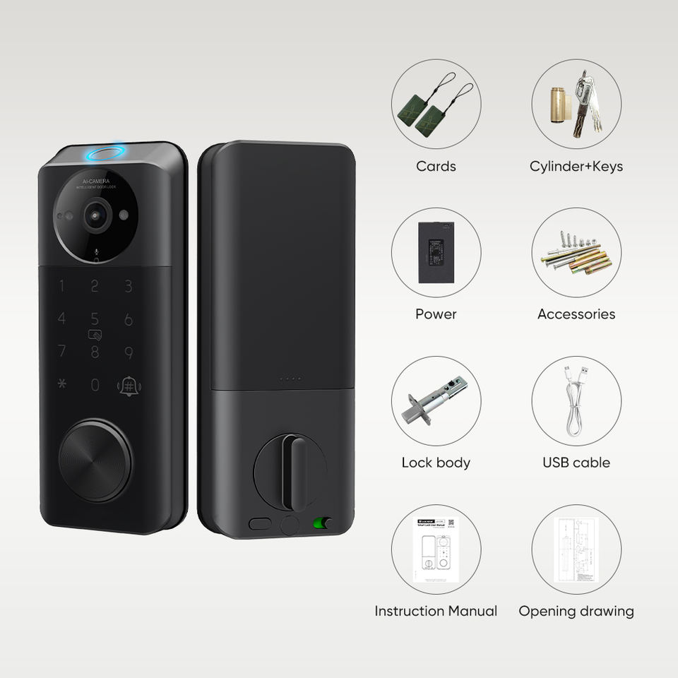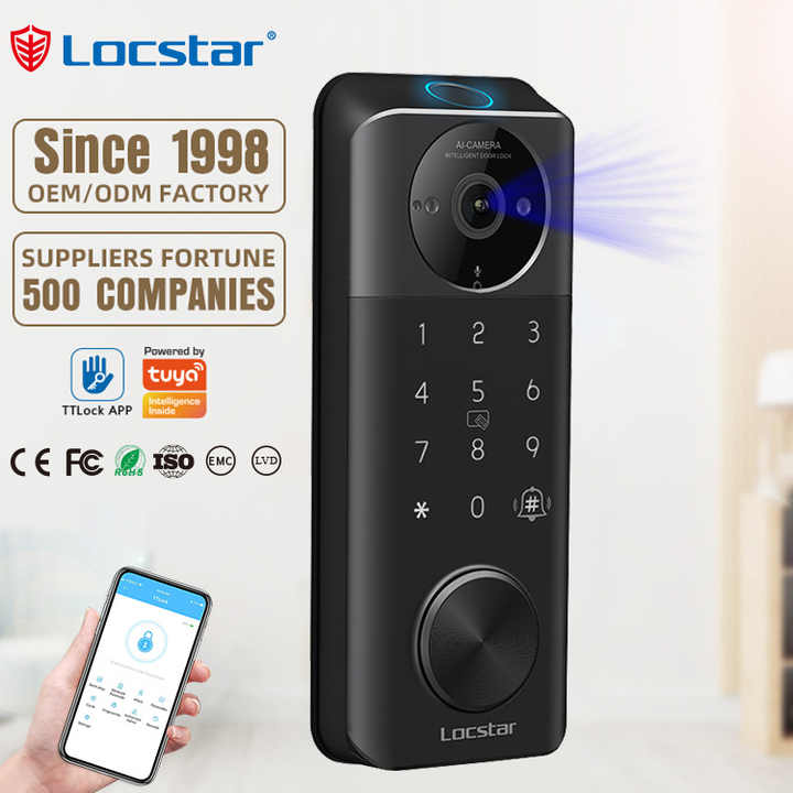 Locstar résidentiel électronique empreinte digitale mot de passe numérique TTlock Touch Id serrure de porte à pêne dormant avant sans clé intelligente avec caméra
