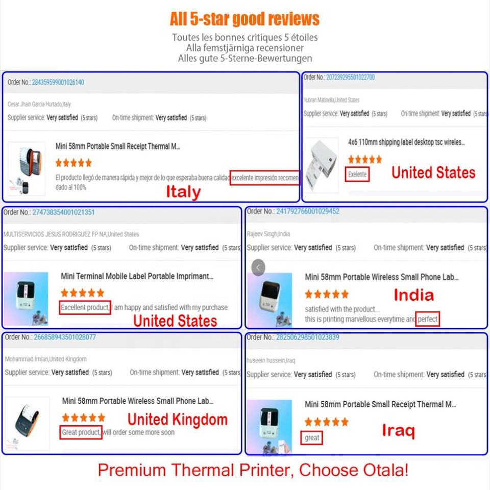 Nom du produit:Étiquette thermique autocollante Mini imprimante thermique portable de reçus et de codes-barres