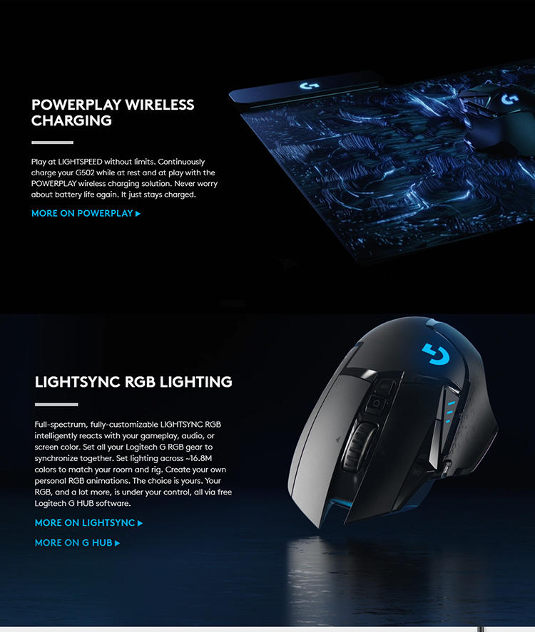 Souris de jeu sans fil Logitech G502 Lightspeed avec capteur Hero 25K, compatible PowerPlay, poids réglables et éclairage RGB Lightsync