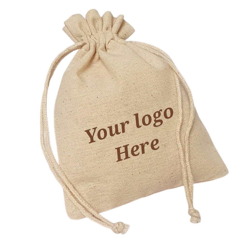 Sac à cordon en coton avec logo Petit sac de rangement | Pochette en toile recyclée écologique personnalisée avec longue poignée