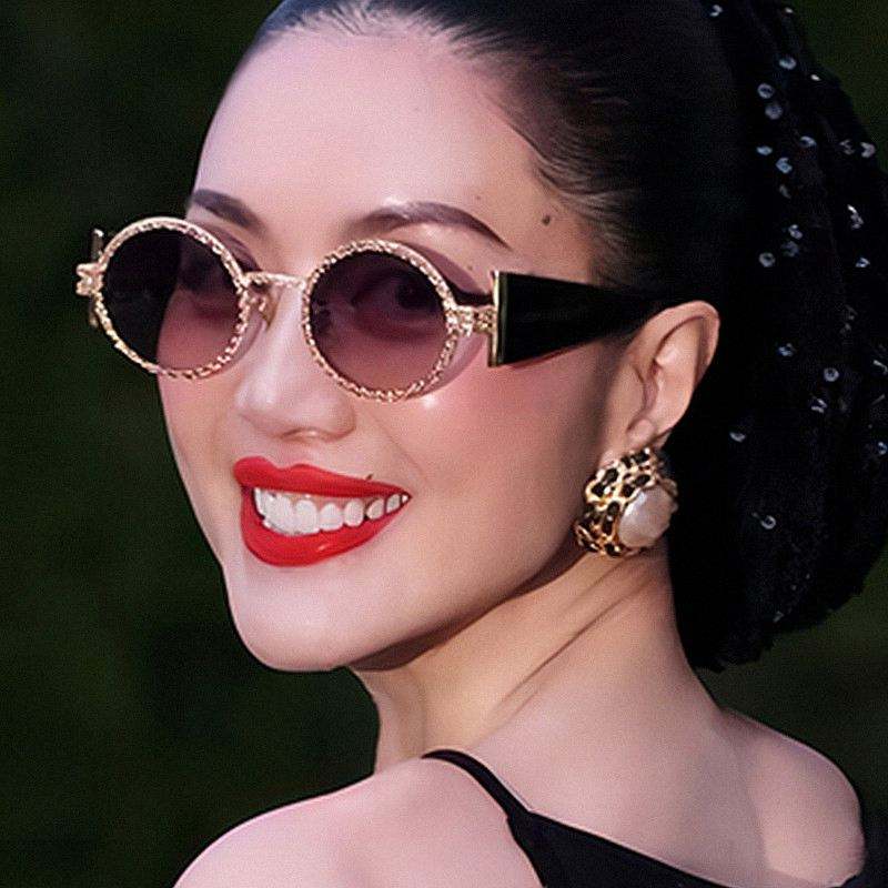 Lunettes de soleil ovales punk en métal pour femme, personnalisables avec logo, collection 2025, protection UV400, branches larges, monture ronde
