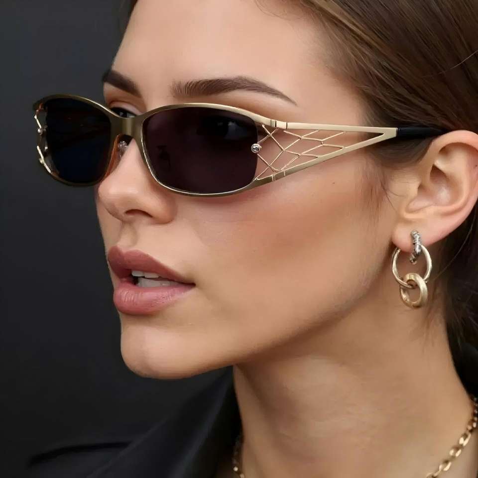 Lunettes de soleil carrées rétro en alliage tendance 2025 avec logo personnalisé, protection UV400, monture métallique ajourée, style Y2K punk pour hommes et femmes