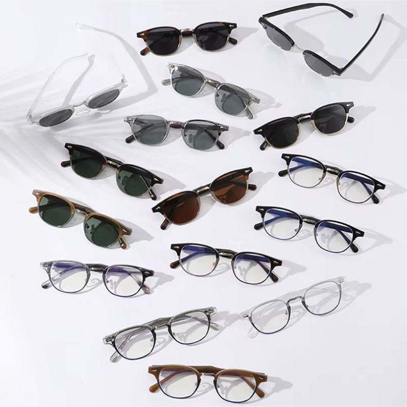 Lunettes de soleil rétro 2025 personnalisées avec logo, anti-lumière bleue, pour ordinateur, UV400, style punk, demi-monture, pour hommes et femmes