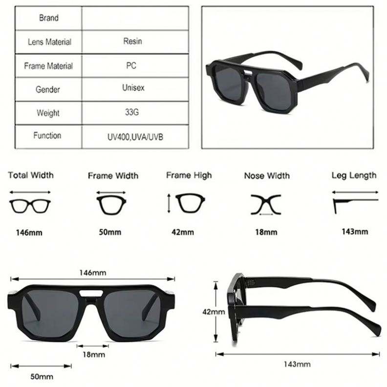 SélectionnerConception: Lunettes de soleil carrées Double Bridges Homme Femme