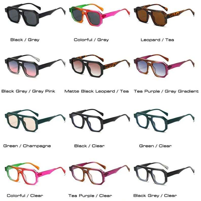Lunettes de soleil rétro 2025 personnalisables avec logo, style punk, pour hommes et femmes, protection UV400, verres dégradés, double pont, forme carrée