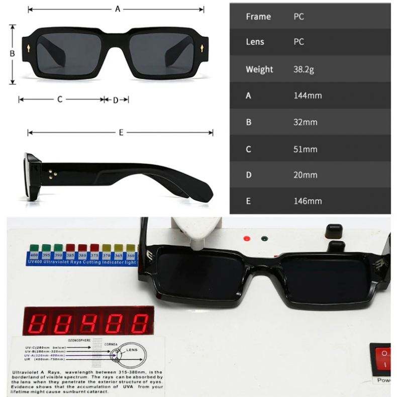 Lunettes de soleil carrées vintage 2025 à petite monture, personnalisables avec logo, protection UV400, rivets, style punk, pour hommes et femmes