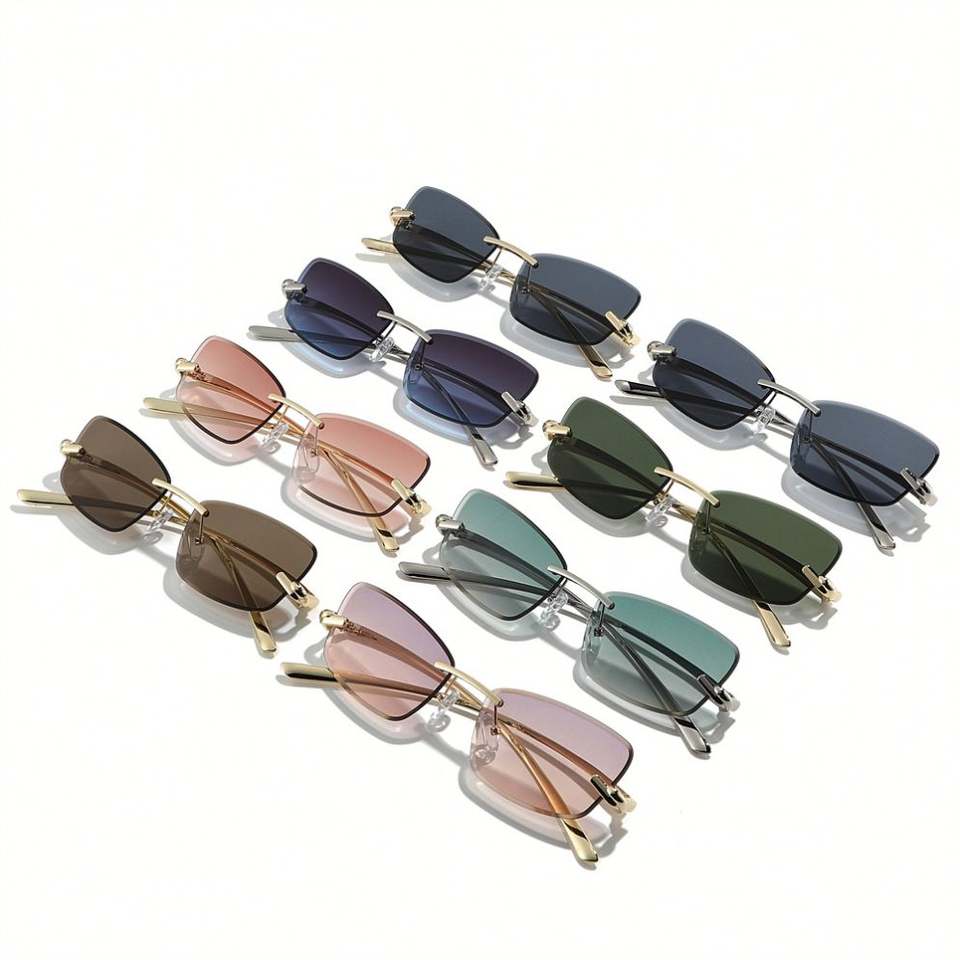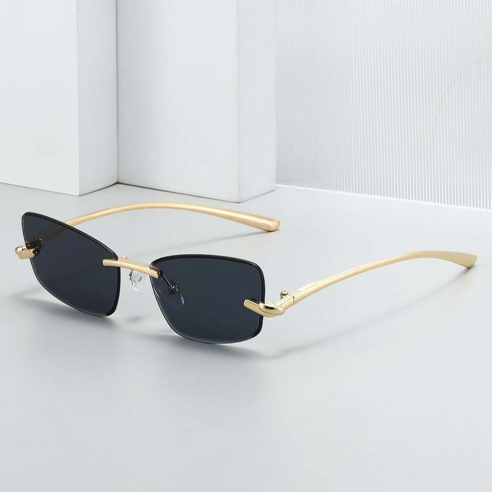 Lunettes de soleil rétro tendance 2026 personnalisables avec logo, pour hommes et femmes, verres taillés, monture carrée en alliage, protection UV400, sans monture, style œil de chat