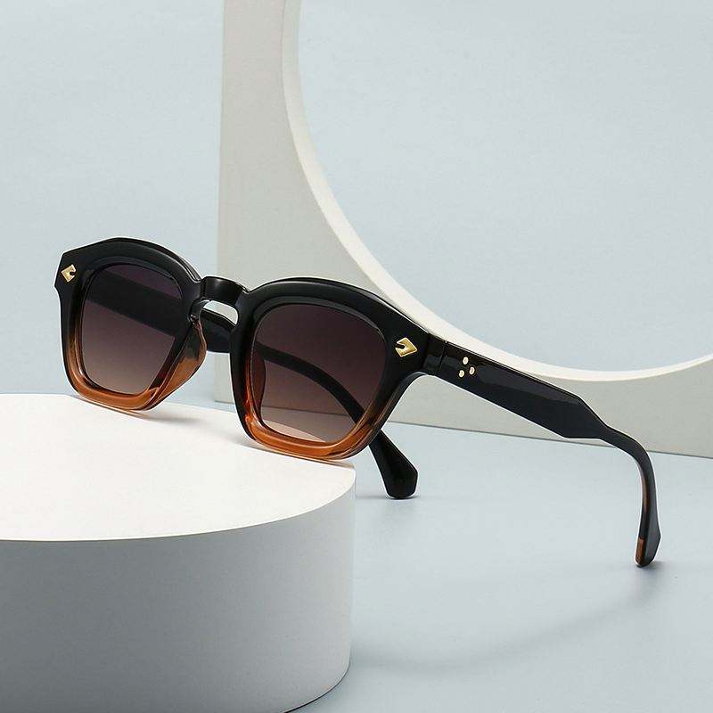 Lunettes de soleil rondes rétro personnalisées avec logo, petite monture, protection UV400, rivets, polygone, pour hommes et femmes